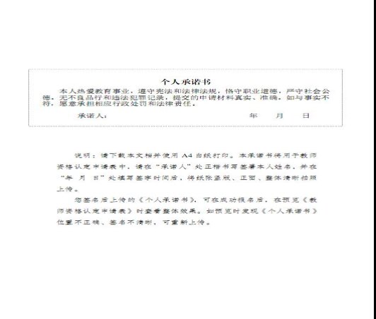 在教师资格认定报名开始前,您可以在 “个人信息中心” 页面下,完成普通话水平测试等级证书信息、学历证书信息、学位证书信息的核验或补充, 请下载《个人承诺书》并按照个人承诺书中的说明进行操作,待报名时使用。