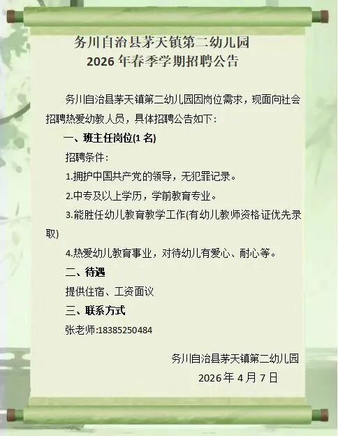 2026年务川县茅天镇第二幼儿园招聘公告