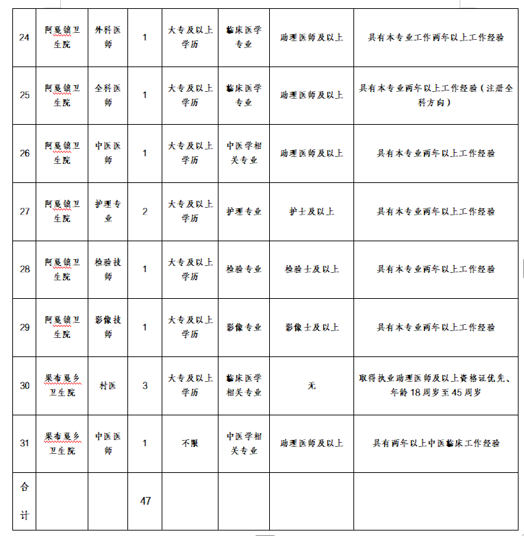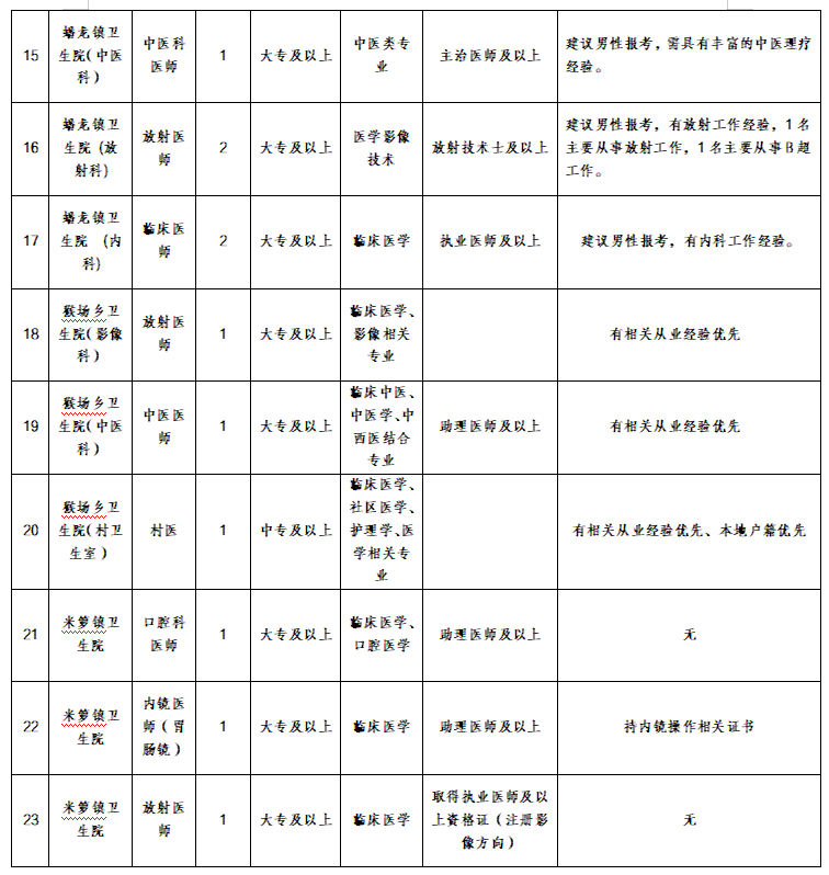 (2)卫生院招聘人员年龄以《岗位一览表》其他条件要求为准。