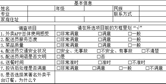 大学生网络外卖订餐服务满意度调查表(初稿)
